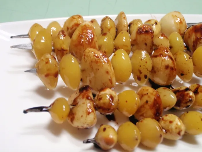 소금구이할 때 팁 하나 드릴게요. 은행이 튀는 게 싫으면 이쑤시개로 미리 구멍을 하나씩 뚫어두세요.