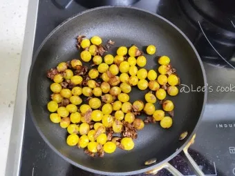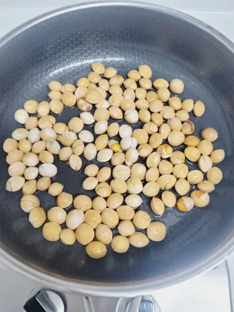 세 번째는 프라이팬 볶기 방법이에요. 기름 없이 마른 프라이팬에 은행을 넣고 중불에서 5분 정도 볶아주세요.
